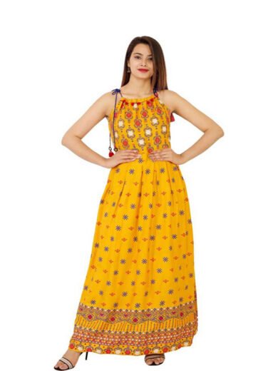 Wows Women Fit and Flare Yellow Dress