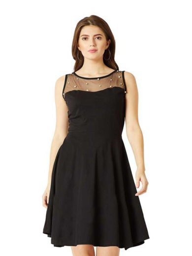 Miss Women Fit and Flare Black Dress